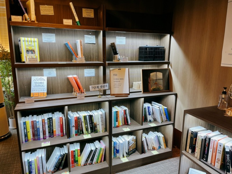 음료가 빨리나왔고, 생각보다 정적스러운 분위기에 빠르게 책을 고르고 자리에 앉았다.
