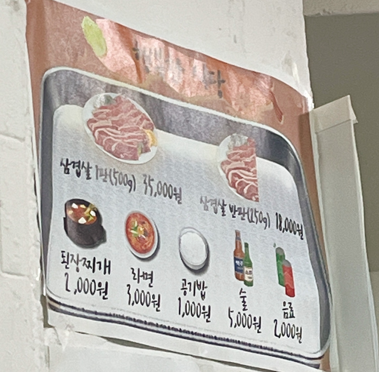 메뉴판 끝이다. 진짜 삼겹살 메인인 집.