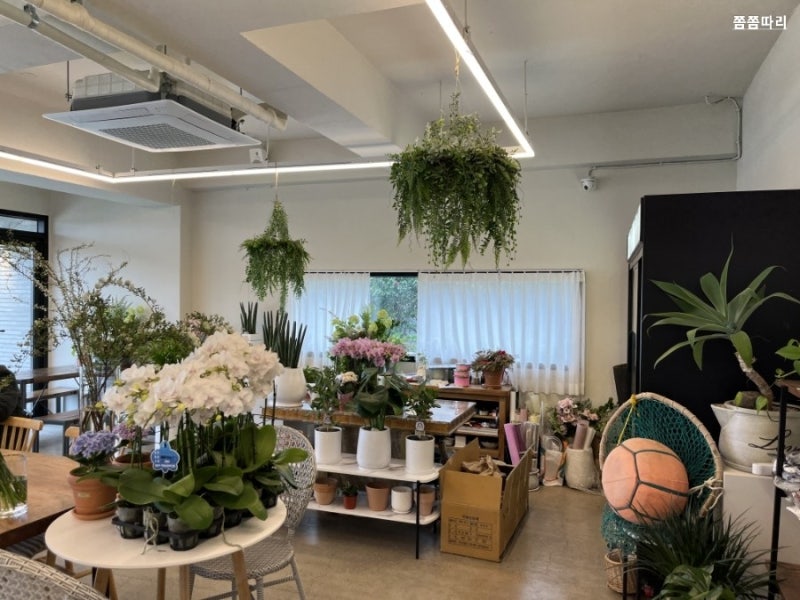 1층에서는 꽃이랑 제주 소품도 같이 판매하고 있다.
