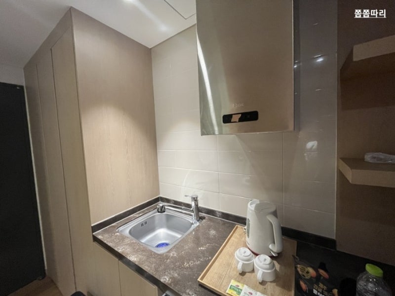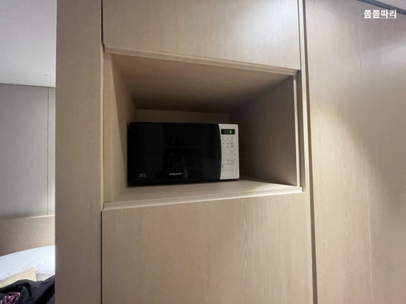 비즈니스 호텔이라 싱크대와 전자렌지가 있으며 보이지 않지만 세탁기도 있다.