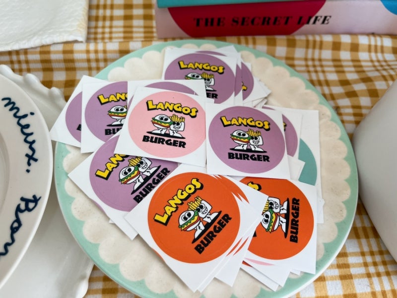 키오스크 옆에는 귀여운 랭고스 스티커와 반려동물 보호센터 엽서가 마련되어 있다.
