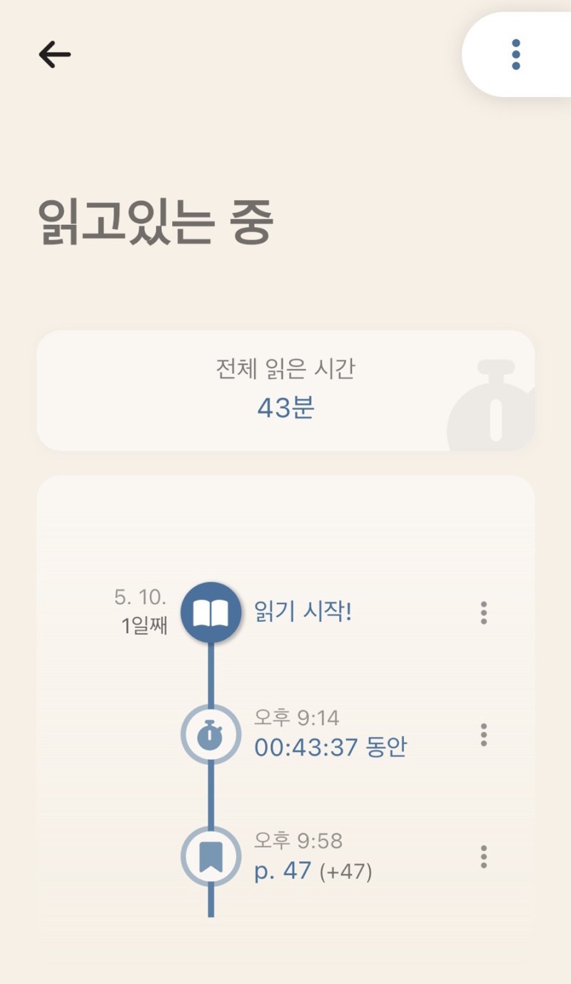 이렇게 책 읽은 시간과 페이지를 기록해 준다.