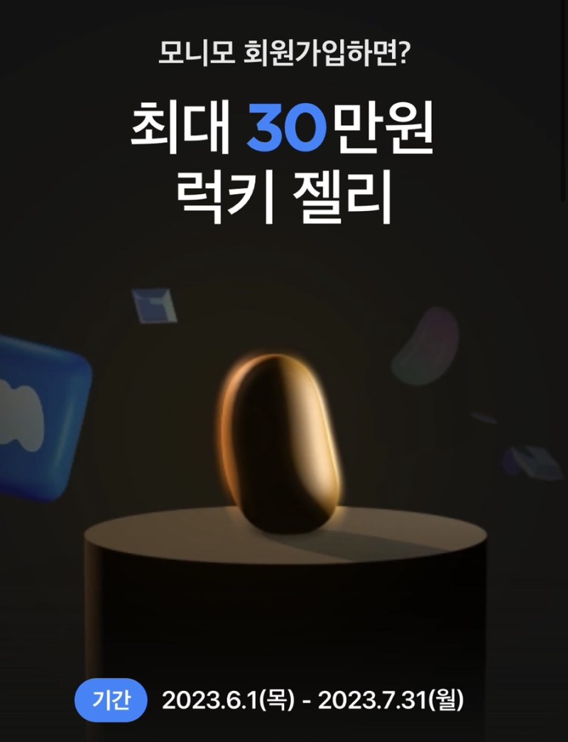 모니모 회원가입시 럭키젤리와 모니모 첫만남 이벤트를 둘 다 할 수 있다.