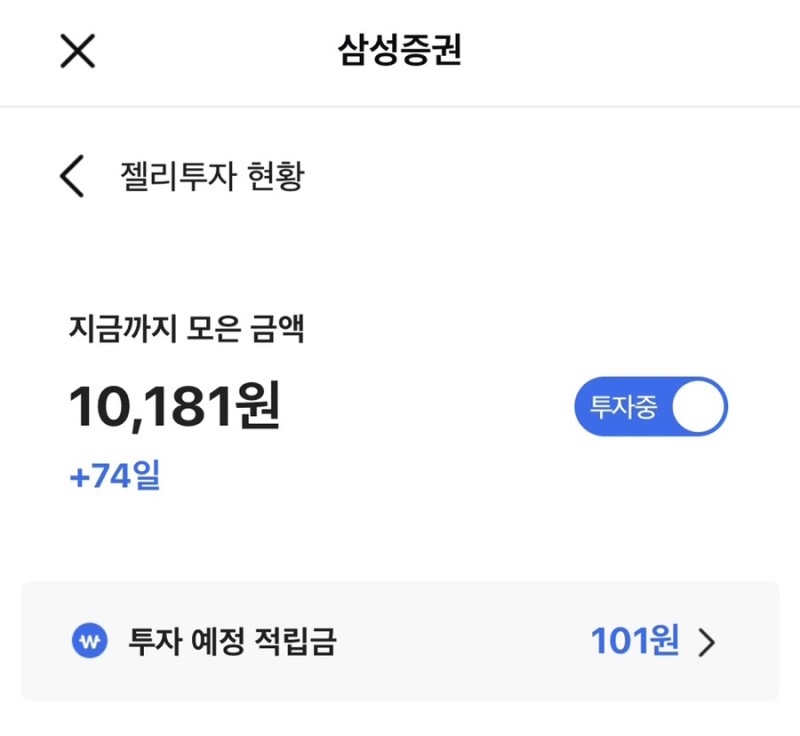 하지만 젤리 하나라도 더 받기 위하여 젤리로 얻은 금액은 삼성증권에 펀드로 투자하여 앱태크 젤리 받기로 하루에 5개의 파랑 젤리를 받는다.